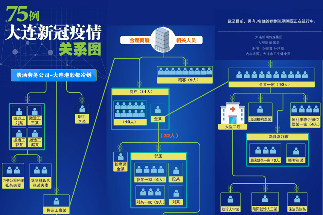 这轮大连疫情由大连港码头工人搬运俄罗斯籍货轮上有新冠病毒的散装货品导致感染,后来经码头工人的活动,在金座商厦内引发商户和顾客的感染,并经过感染商户和顾客引发后续传播。