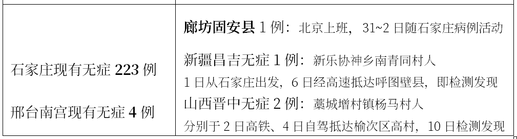 山西晋中无症2例:2日、4日离开石家庄,10日主动监测发现。