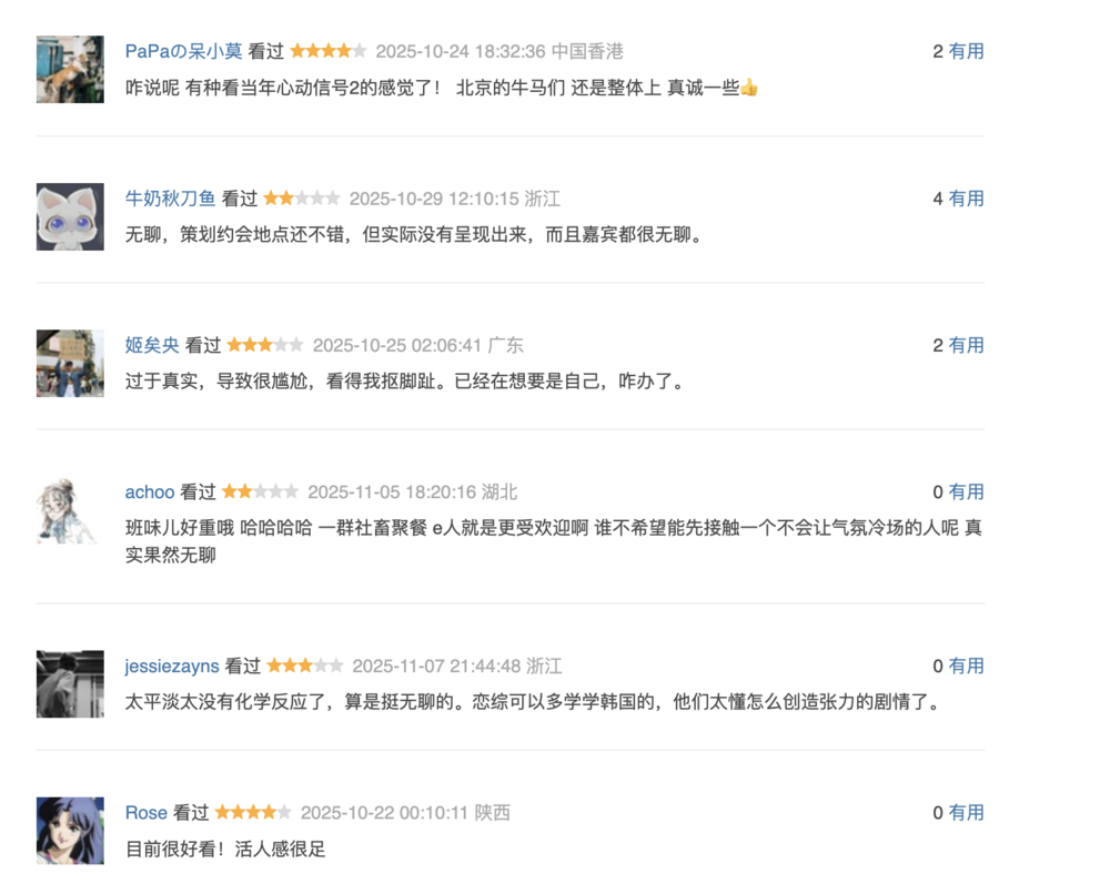 但并不是节目不好看,而是正因为它太过真实,我们在生活中早就深有体会。屏幕里的情绪和细节就像身边发生的事,所以有人才觉得乏味。