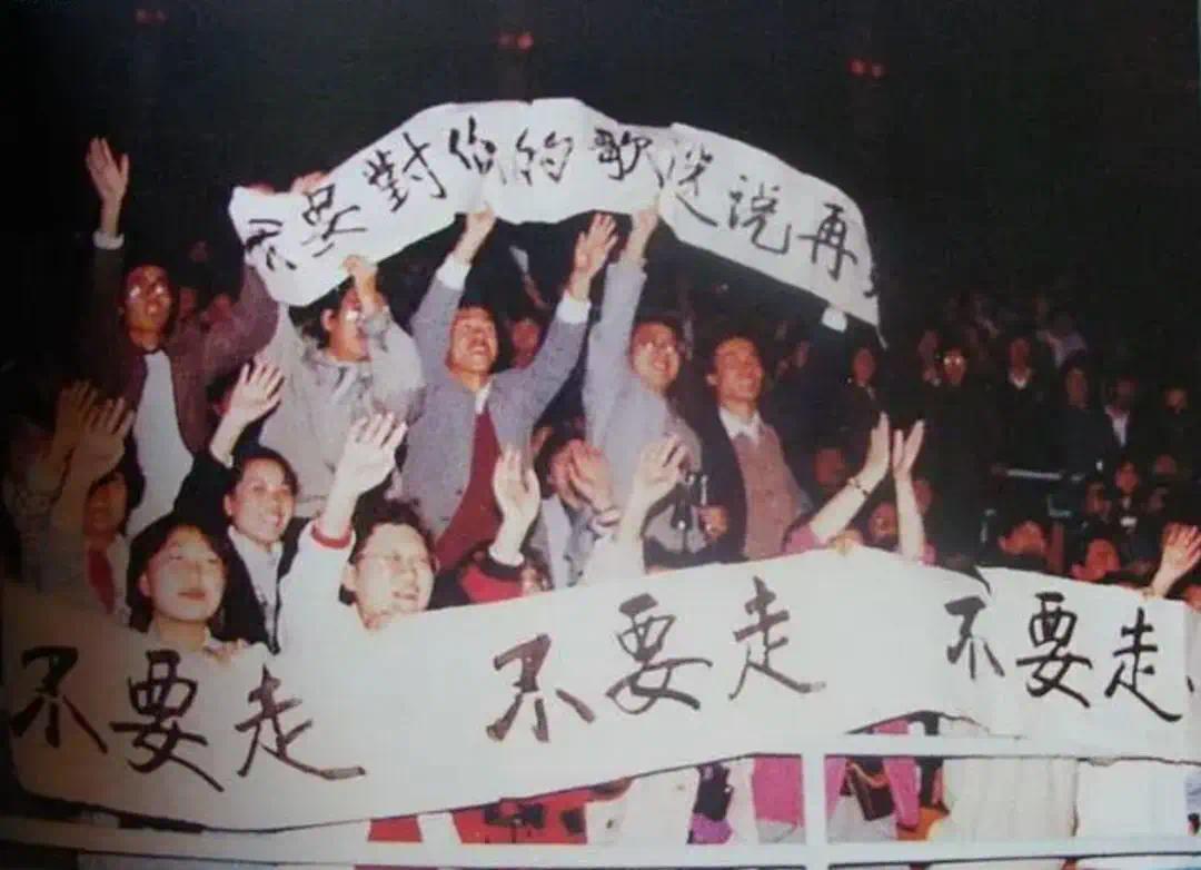 台下,含蓄的中国歌迷第一次直白地表达对明星的挽留之情,他们哭着打出白色横幅:“不要走不要走”“不要对你的歌迷说再见”。