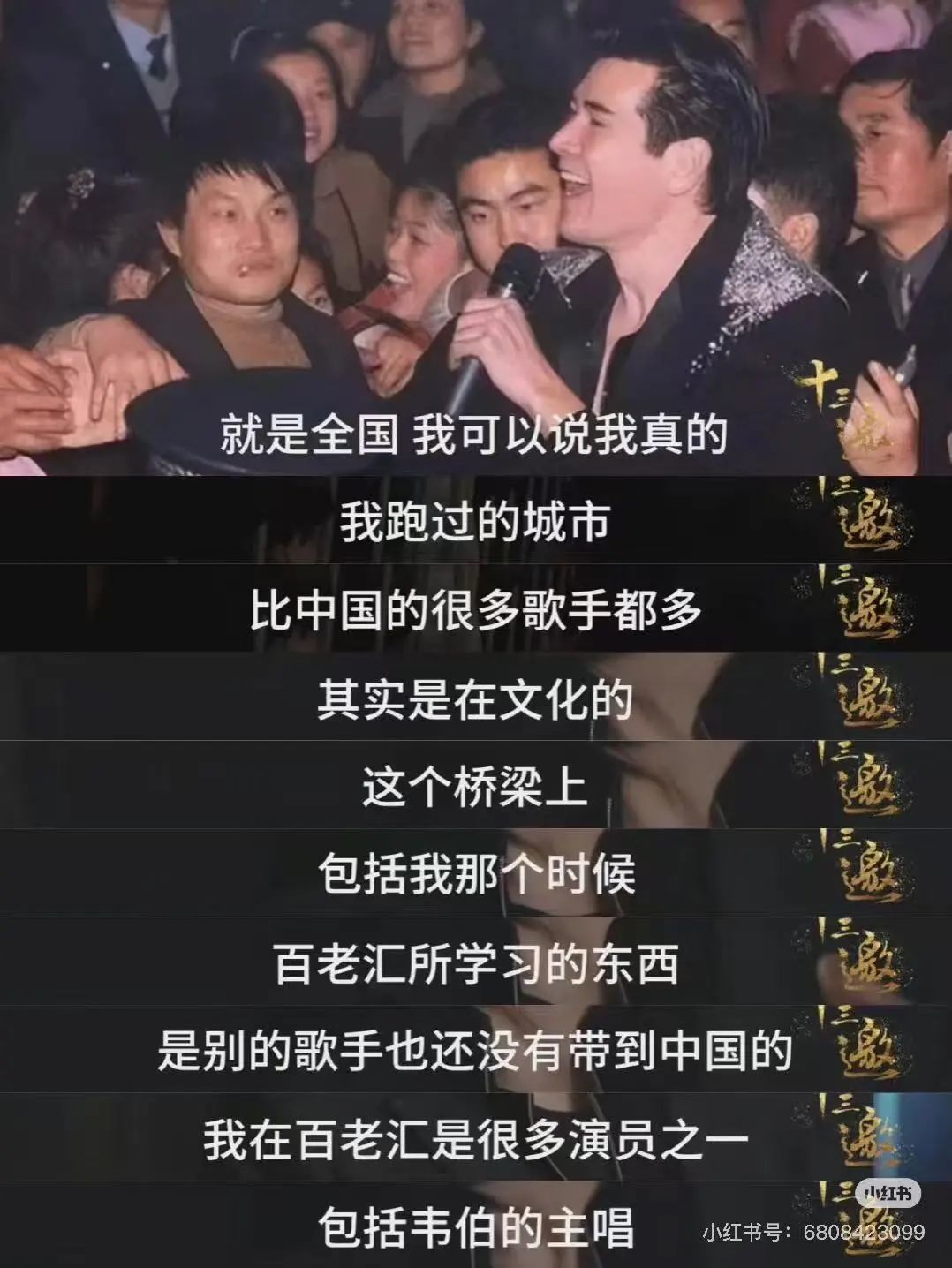 他依旧敬业。再回国的费翔,没那么火了,很多演出在二三线城市和开业典礼上。