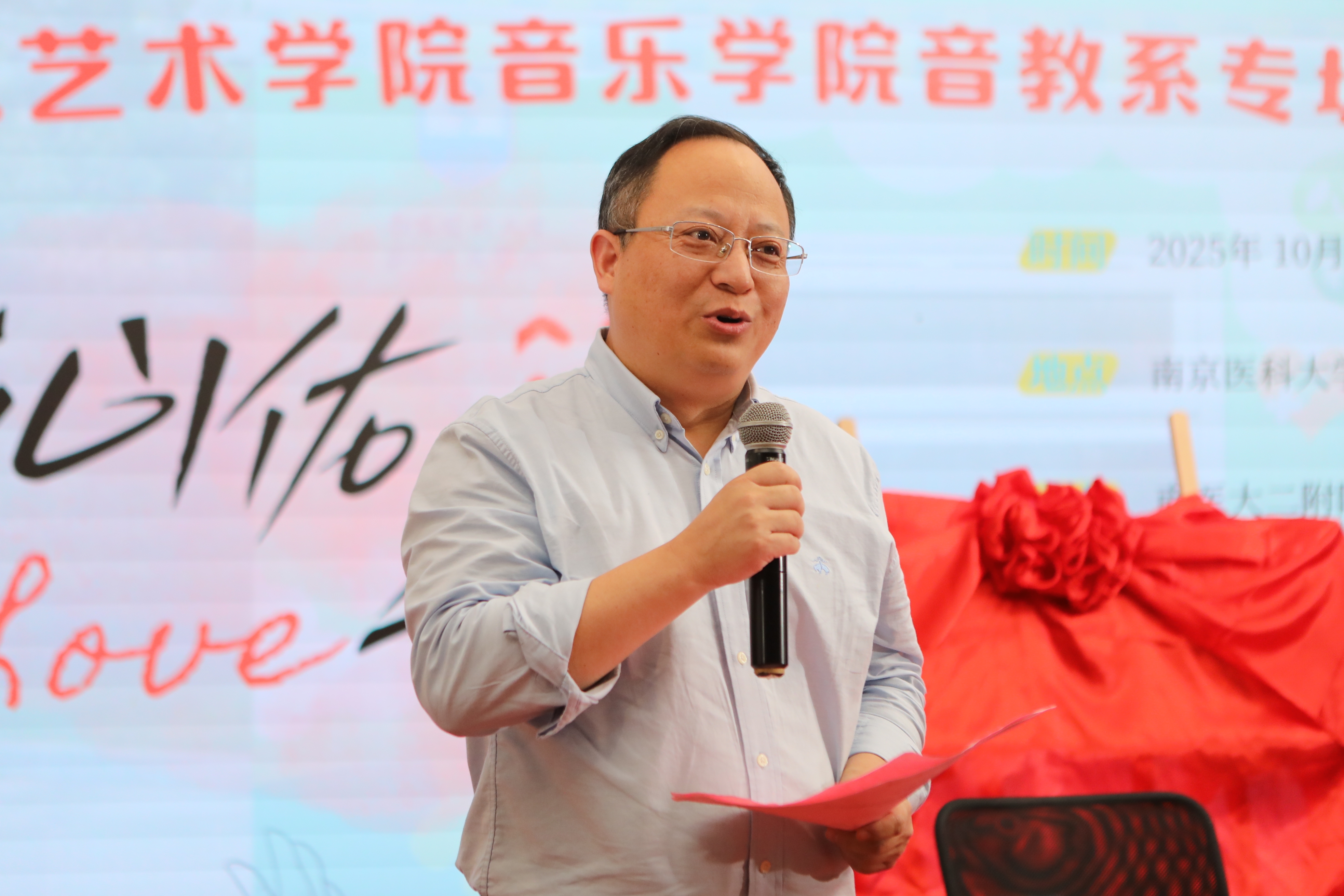 南医大二附院副院长戴春笋致辞,回顾了“心佑工程”的公益历程,十一年来,心佑团队跨越万里,已成功救治数千名先心病患儿。戴春笋副院长表示,此次与南京艺术学院音乐学院携手共建 “实习实践基地”与“劳动教育基地”,是“心佑工程”从医疗救助向人文关怀拓展的生动体现。