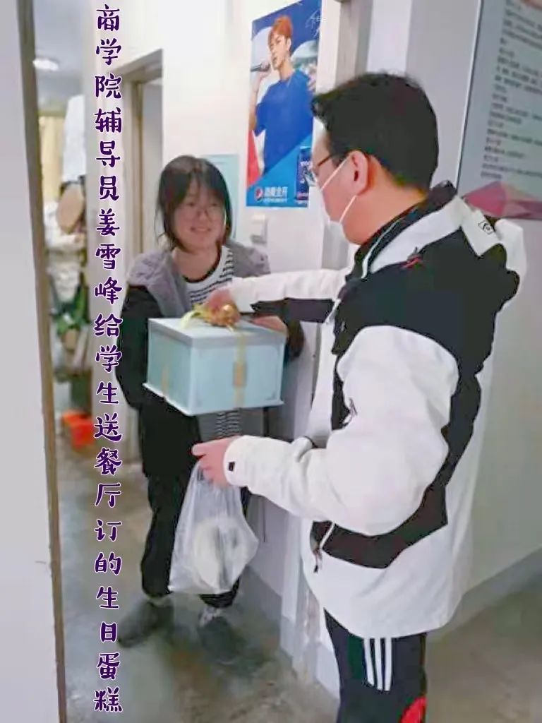 封闭期间,他将象征着平安的苹果亲自送到学生手里,红红的苹果被学生们“炫耀”在微信群与朋友圈,学生们都说“实在是太暖心了!”;他化身“勤务员”,为学生送取生活用品和药物,深入了解学生思想动态和心理状况,第一时间为学生提供帮助,他把温暖传递到每个角落。