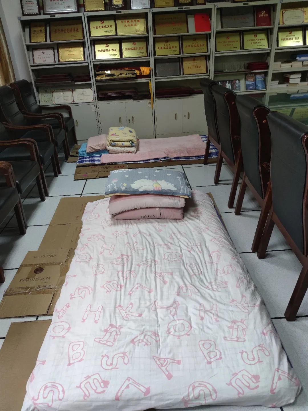 她和同事们从24小时在线变为24小时在岗,化身早0晚0一周7天的青大学工“007”。她的同事们因陋就简,在办公室搭建床铺,有的豪横起来,纸壳一展、地铺打起来。清晨的闹钟响起,凌晨放下的被褥闻令又卷了起来,学生们说这叫“去留无意,看地上被卷被舒。”她,被学生邀请住进了宿舍,当夜里11点多,整理完一天的任务安排好明天的工作,她回到宿舍,学生们已安静睡下,但门口的灯光依然亮着,那一刻,心底的温热流淌不止……