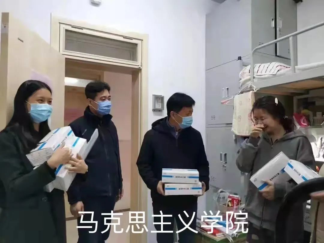 寒风中,他爱护的学生们志愿冲在疫情防控一线上,协助发放物资、维持秩序、校园服务等,他担心他们身体吃不消,尽力做好后勤保障工作,他将烧好的开水、爱心热水袋一次次灌满、一趟趟送到手中,为志愿者们送去寒日里温暖;他心疼“大白”们在户外吹着风吃饭,便把学院的谈心谈话室收拾成专属“小饭桌”,只让“大白”们都能吃上热乎饭。