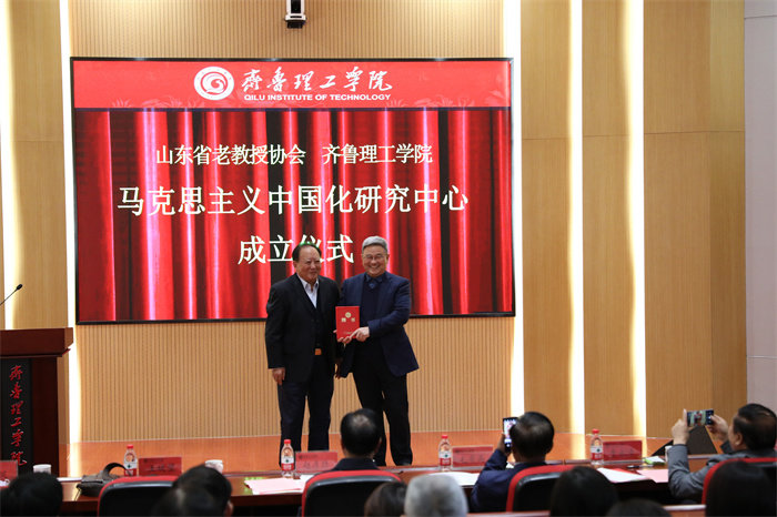 11月1日,值此全国上下深入学习宣传贯彻党的二十大精神的重要时机,由山东省老教授协会和我校共同发起成立的“马克思主义中国化研究中心”在我校正式揭牌。山东师范大学原校长、山东省老教授协会会长赵彦修教授,山东中医药大学原纪委书记、山东省老教授协会常务副会长毛有高教授,中共山东省委党校原副校长、山东省老教授协会副会长李永清教授,山东大学马克思主义理论研究中心主任、山东省老教授协会讲授团成员周向军教授,中共山东省委党校哲学教研部原主任、山东省老教授协会副会长张友谊教授,山东省老教授协会秘书长赵宗健,山东省老教授协会办公室副主任葛恒迁,齐鲁理工学院董事会董事、专家委员会主任王琰璧教授,学校党委书记徐淑凤,党委副书记、副校长张庚灵,总督学、副校长魏希启,副校长单成娟,“马克思主义中国化研究中心”研究成员代表,各教学单位、部门负责人出席会议。