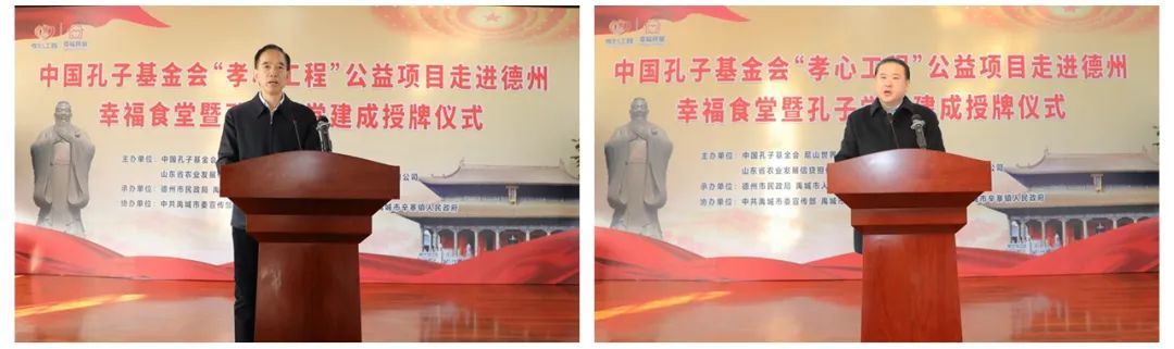 1月11日,中国孔子基金会“孝心工程”公益项目走进德州幸福食堂暨孔子学堂建成授牌仪式在禹城市举行。山东省人大常委会原党组书记、副主任,中国孔子基金会理事长于晓明出席活动,为辛店镇、辛寨镇幸福食堂授牌。