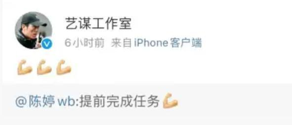 今年,三孩生育政策出来后,陈婷便在微博表示“提前完成任务”,随即张艺谋工作室也转发了陈婷的动态,配上了加油表情包。