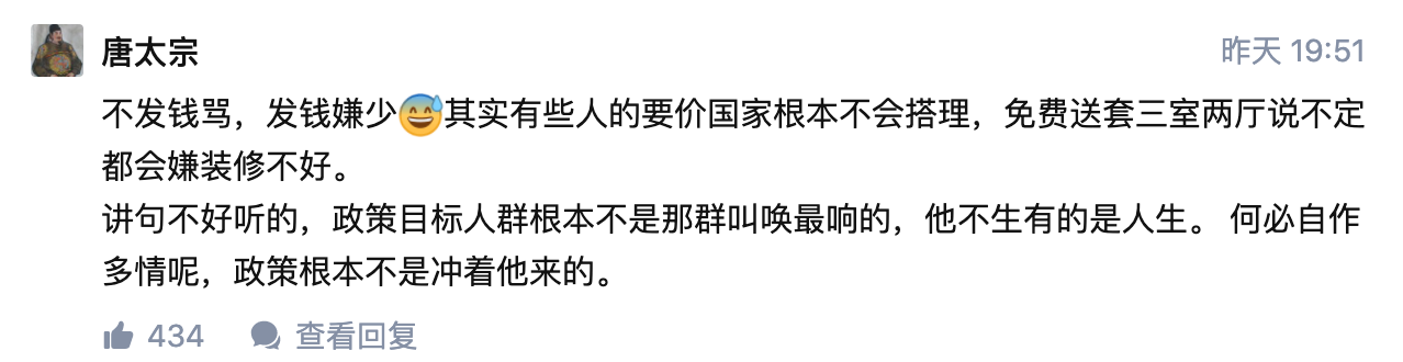 鼓励生育,不能只是简单粗暴地发红包,还有很多住房、育儿、生育假期等后续政策得逐步跟进。