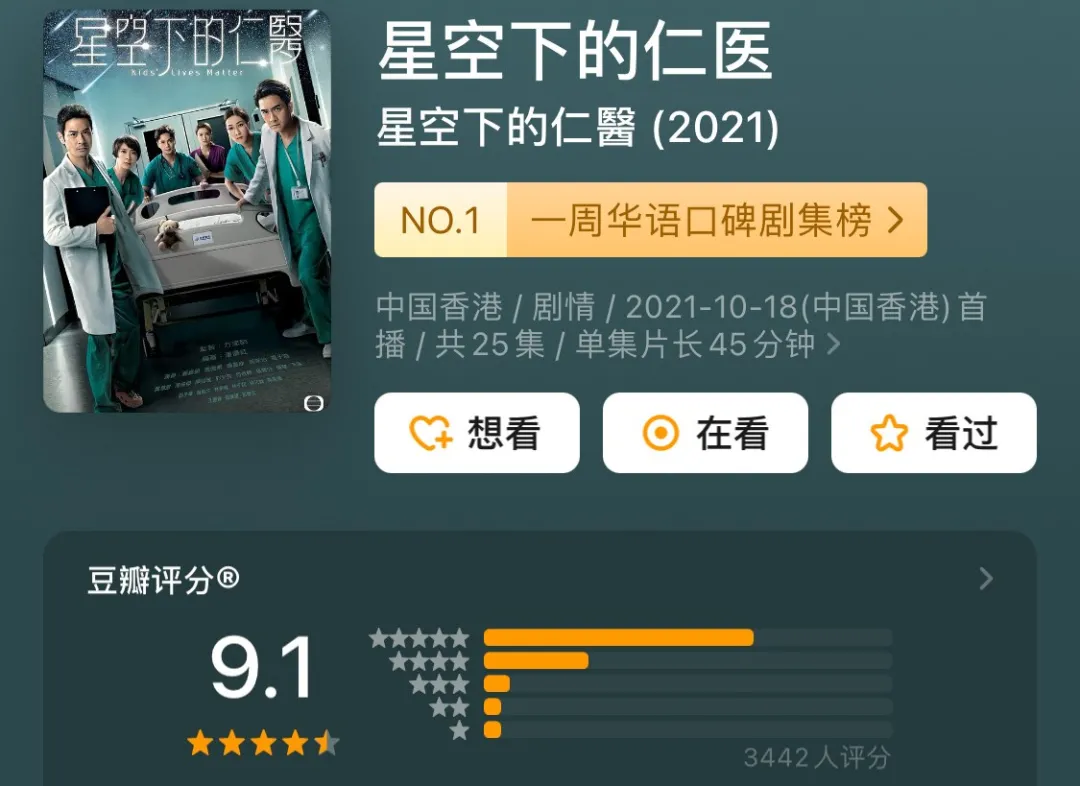 目前播出近半,已经拿到了9.1的豆瓣高分,提前预定“年度最佳港剧”。甚至有人认为,它能成为TVB医疗剧的新巅峰。