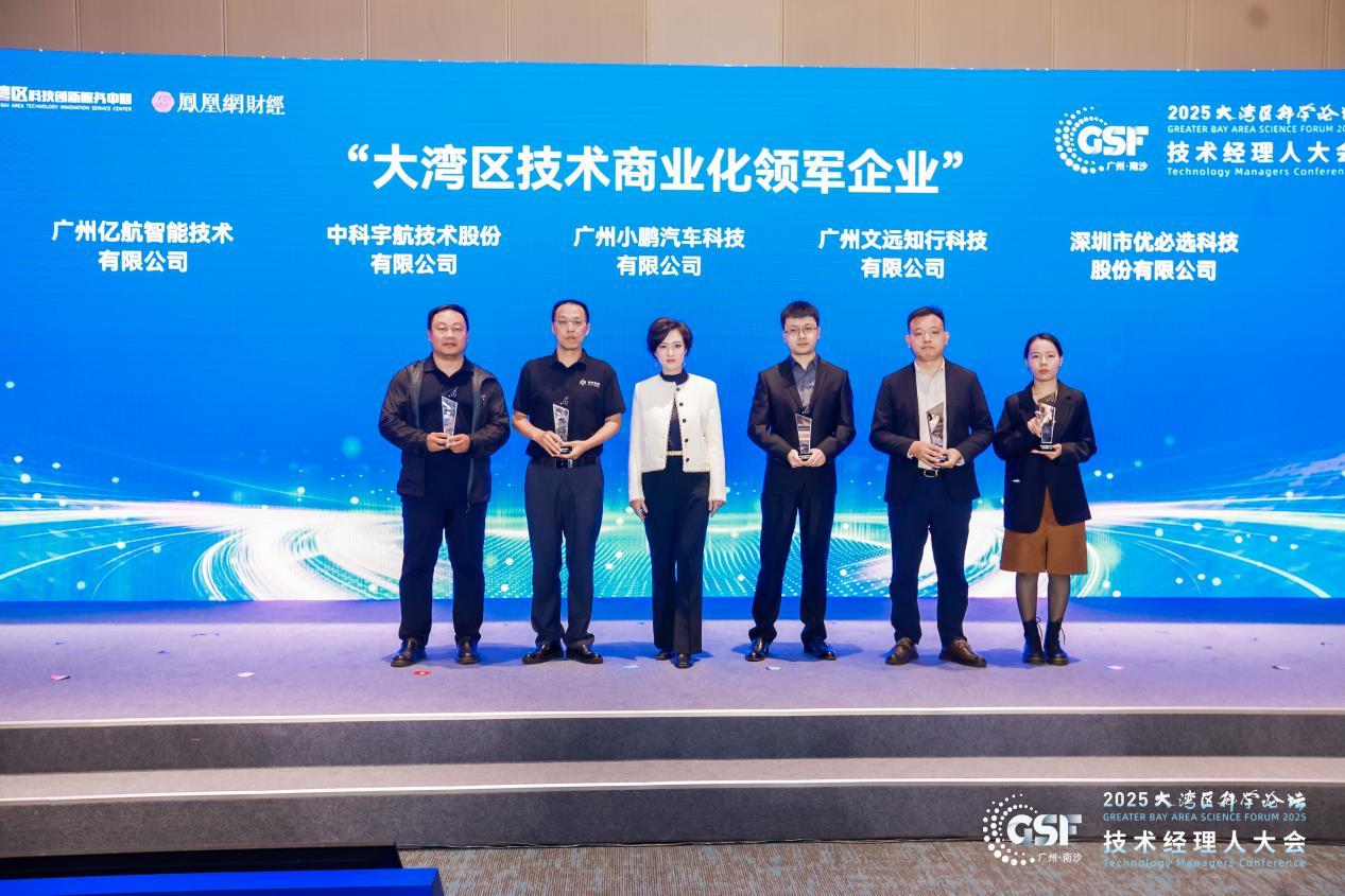 大会期间,两项重磅榜单同步发布,为湾区技术商业化树立行业典范。由凤凰网、大湾区科技创新服务中心、中新国际联合研究院、国际技术转移协作网络(ITTN)联合授予的“大湾区技术商业化领军企业”榜率先揭晓,小鹏汽车、中科宇航、文远知行、深圳市优必选科技股份有限公司、广州亿航智能技术有限公司凭借高技术壁垒、清晰商业化路径与显著行业影响力成功入选。这些企业以“从0到1”的技术突破与“从1到N”的市场推广,成为大湾区培育新质生产力的先锋代表。