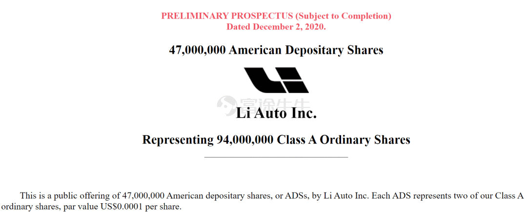 据SEC文件显示,理想汽车申请配售4700万股ADS。