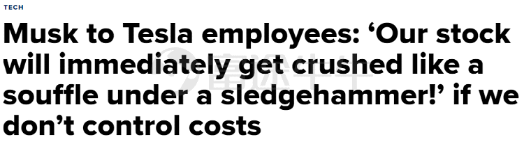 外媒头条报道:马斯克发飙!呼吁员工控制成本,不然股价会暴跌。