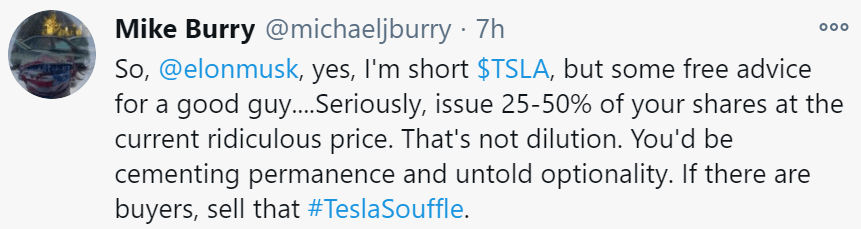讲述2008年全球金融危机的著名电影《大空头》原型Micheal Burry和特斯拉杠上了。