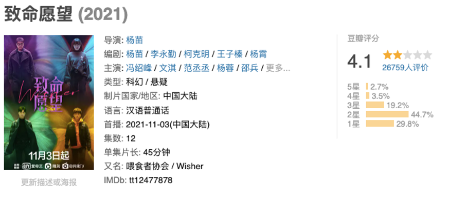 第二部《致命愿望》,创意也是极好的。将科幻和悬疑相结合,偏偏编剧又过于依赖于科幻。本应该是逻辑圆满科幻,在剧中则变成了让科幻解决逻辑问题。