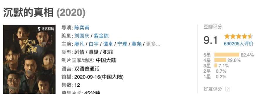 《隐秘的角落》《沉默的真相》在这三个维度上做得都很好,尤其是《沉默的真相》,其中“为真相献祭”的主题震撼人心,使它成为同类作品中绝对的佼佼者。