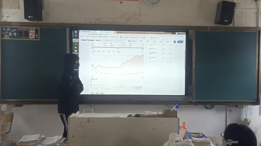 其中被记录下的行为荒诞至极。包括学生喝水、交谈、挠头、擦眼镜、玩头发、尅指甲、晃笔、长时间盯着摄像头看、笑着唱了一句歌、看了一下钟表,等等。