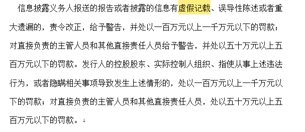 如果按照2020年3月1日开始施行的新证券法可不止这些,不过因为该事件发生在之前所以还按照旧证券法执行。新证券法规定信息披露义务人报送的报告或者披露的信息有虚假记载、误导性陈述或者重大遗漏的,责令改正,给予警告,并处以一百万元以上一千万元以下的罚款;对直接负责的主管人员和其他直接责任人员给予警告,并处以五十万元以上五百万元以下的罚款。发行人的控股股东、实际控制人组织、指使从事上述违法行为,或者隐瞒相关事项导致发生上述情形的,处以一百万元以上一千万元以下的罚款;对直接负责的主管人员和其他直接责任人员,处以五十万元以上五百万元以下的罚款。