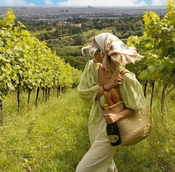 只要一块方格布、一片绿油油的草地、一些零碎的阳光、一条长长的碎花裙,以及一堆随意摆落的红酒、水果和法棍,就像去到了法(第四声)国巴黎。