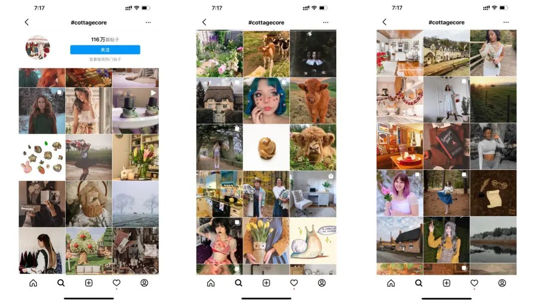 类似话题近期在 Instagram 又开始风靡 ,TikTok 上相关视频已被观看 40 亿次,共同制造出一片互联网上的田园乌托邦,给人们带来视觉与心灵的双重慰藉,堪称「当代年轻人的疗伤大法」。