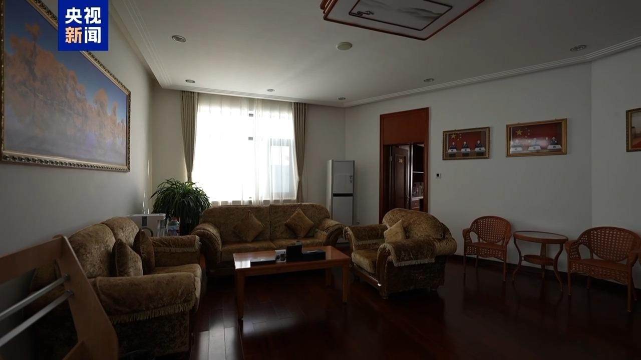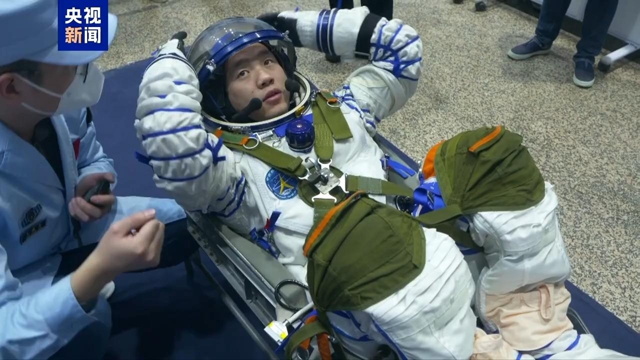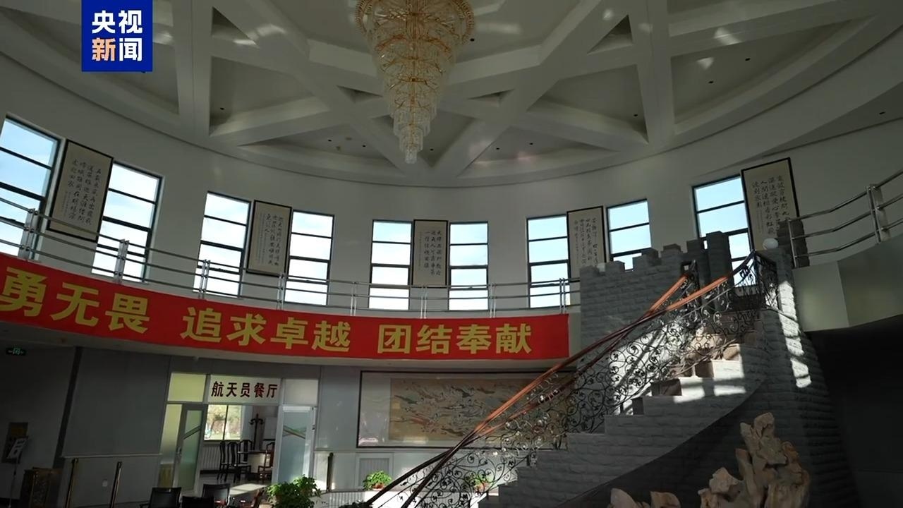 总台记者 刘洁:问天阁是航天员出征太空前工作、生活、训练的地方。问天阁是一座两层的建筑,占地面积1300多平方米,一层设有餐厅、健身房、理疗室、飞行准备间、出征大厅等;二层设有航天员的卧室、医监医保室、心理训练室等。