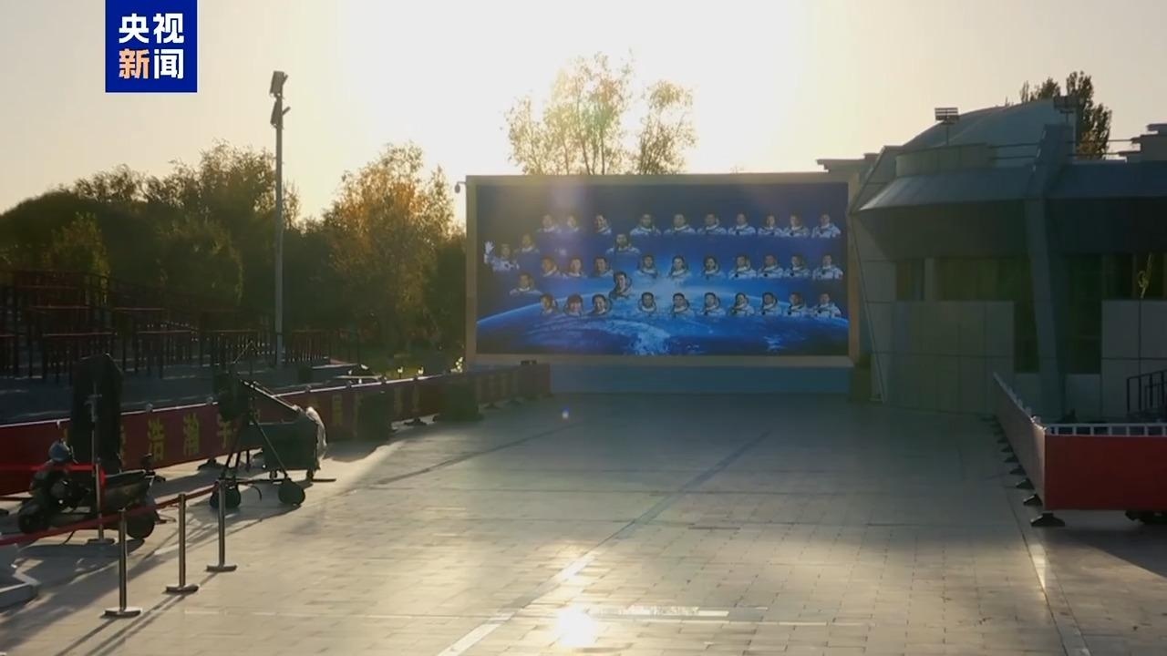出征大厅外,是神五到神十八乘组的航天员照片墙,每一张背后都是满满的故事。比如,神舟六号乘组当时出征的仪式现场,能看到当他们站在这个广场的时候还风雪交加。