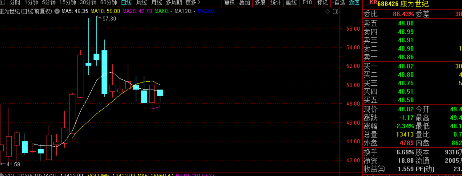 与两家2021年上市的核酸检测公司不同的是,康为世纪从上市开始就长期破发。