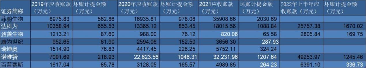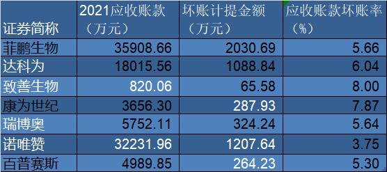 瑞博奥和达科为应收账款占比超50% 7家企业中致善生物应收账款坏账率最高