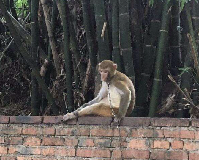 年幼的猴子常年被铁链锁住,变成“合影专用猴”,供游客轮流逗弄合影。
