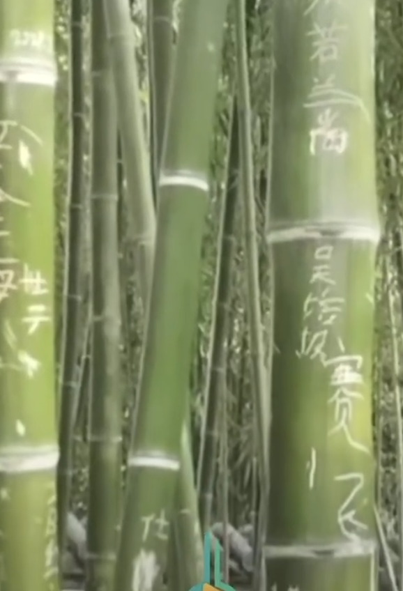 原本完整的竹林,不少竹杆上被刻满深深浅浅的字句,新鲜的刀痕在青绿竹衣上显得格外刺眼。
