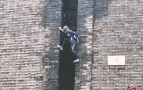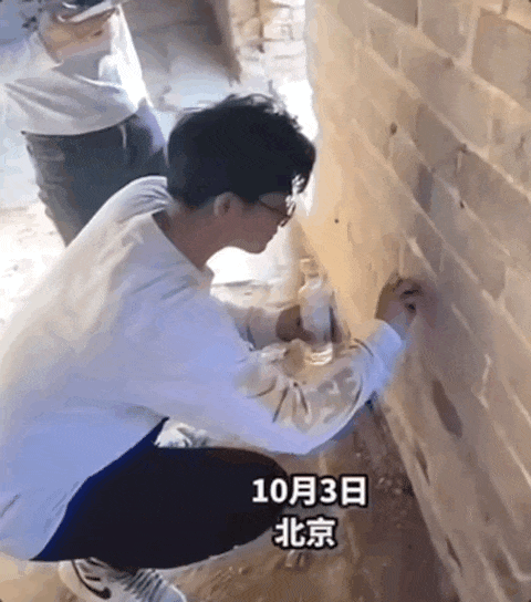 西安拥有600多年历史的古城墙,有人为了拍摄照片,踩着墙砖向上攀爬。