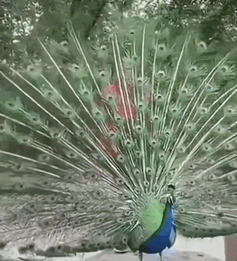 他们举着手机步步逼近,遇到开屏的孔雀,故意走上前扒开屏羽,把孔雀当成摆拍道具。