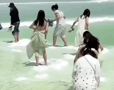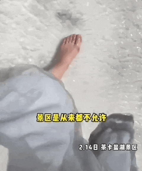 在青海省的茶卡盐湖,游客想要拍摄天空之镜的效果。然而,只因租赁的环保鞋套太丑、拍照难看,便无视规则,直接光脚踩上盐结晶层。