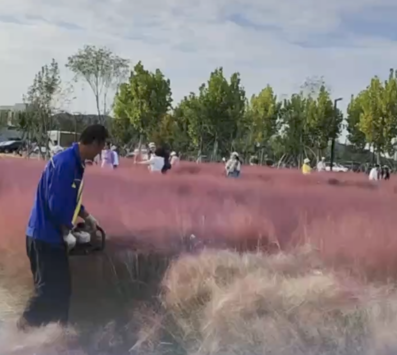 国庆期间,辽宁大连某公园的“粉黛花海”,开得正茂,却被提前割除。