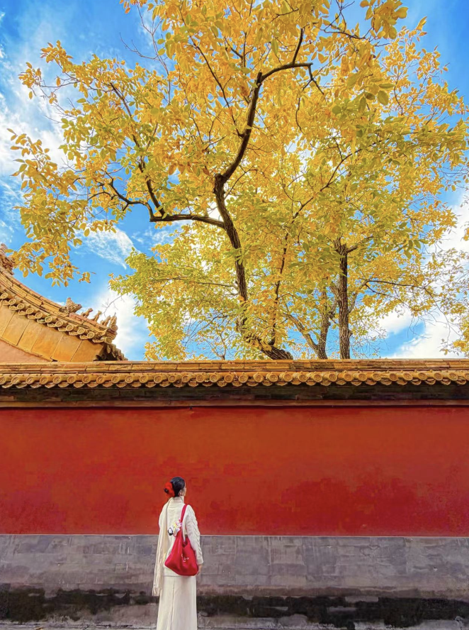 拍照的瞬间,本就可以不那么“费力”,夕阳斜照下,红墙金瓦自带光芒,无需惊扰任何古迹,也能记录瞬间。