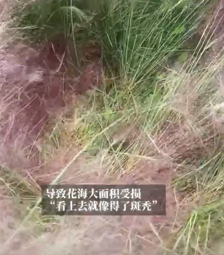 只因游客频繁踩踏,花海严重受损。
