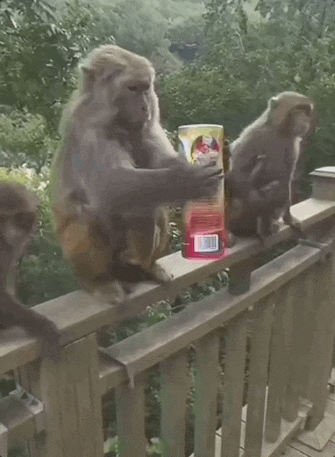 为了博取流量,有人假意投喂猴子,实则在薯片桶里放入整蛊道具,猴群被惊吓四散。