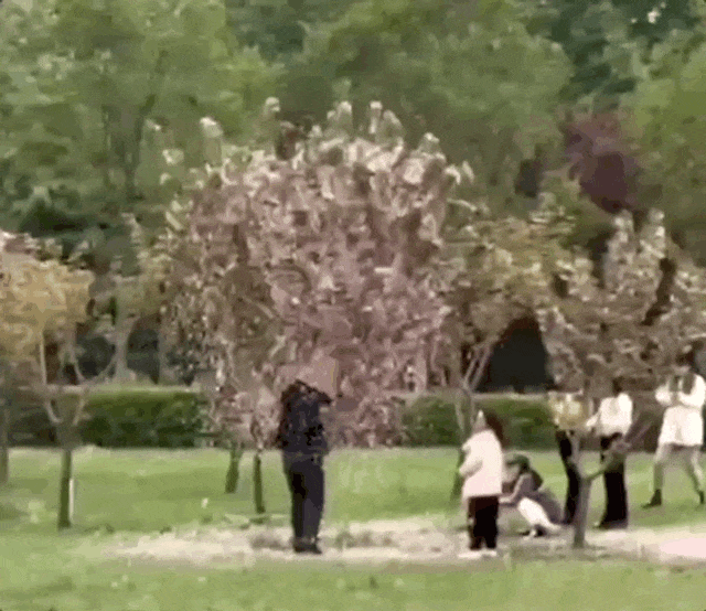 为了出片,总有人不惜疯狂摇晃树木,让花瓣、叶片簌簌飘落,营造拍照的氛围感。