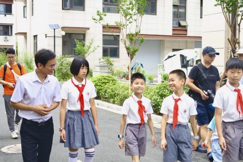 伴着夕阳,竹园村之行也进入尾声。杭州养正小学大队委郑睿轩说,一天的暑假社会实践让他们看到了农村的大变化,而他在长大以后也想成为范叔叔一样的人,让农村里的每家每户都富裕起来。