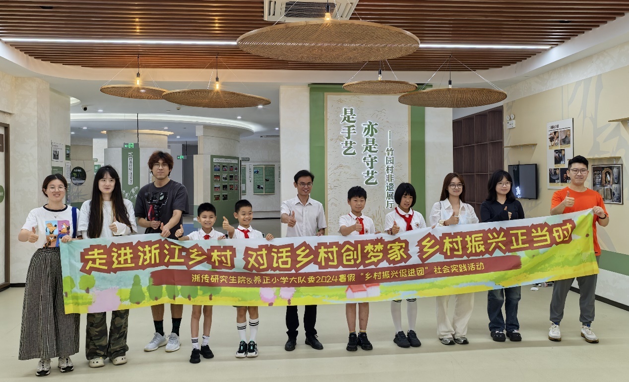 以青春强音,唱响乡村新声。为深入调研乡村CEO经营模式下的乡村新面貌,探索新时代青年人扎根乡村,挥洒汗水与热情的内在动因,2024年7月中旬,杭州养正小学大队委员会携手浙江传媒学院新闻与传播学院 “青年行 乡村兴” 研究生暑期社会实践团共赴杭州市余杭区竹园村,采访当地乡村经理人范立慧,并走访村民乡贤,体验新农村的新面貌。