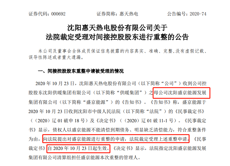 有人曾怀疑上述截图的真实性,但很快有人发现,相关上市公司在10月23日披露的公告里,也直指该发行人已被法院受理了重整申请。