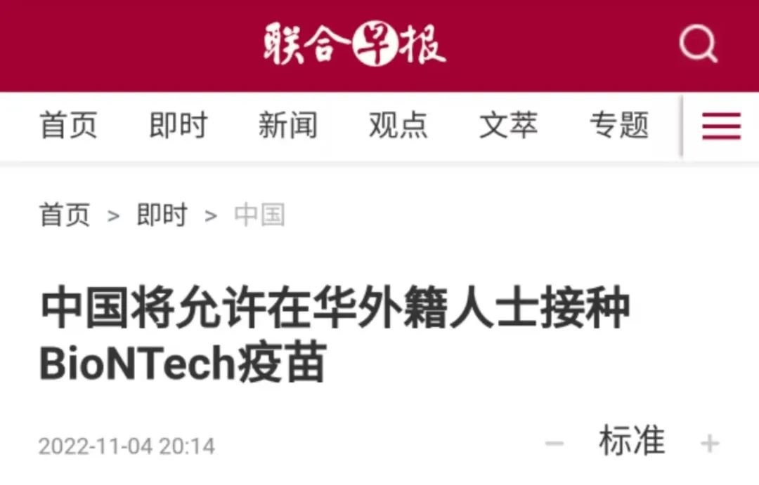 继11月4日,德国总理奥拉夫·朔尔茨(Olaf Scholz)表示,中国已同意批准为在中国的外国居民提供BioNTech(复必泰)新冠疫苗,两周后,国家疾控局回答了复必泰何时在国内上市的最新进展。