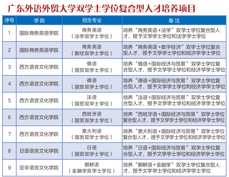 二、9个双学士学位项目首年招生,成为广东省首家双学士学位项目建设高校