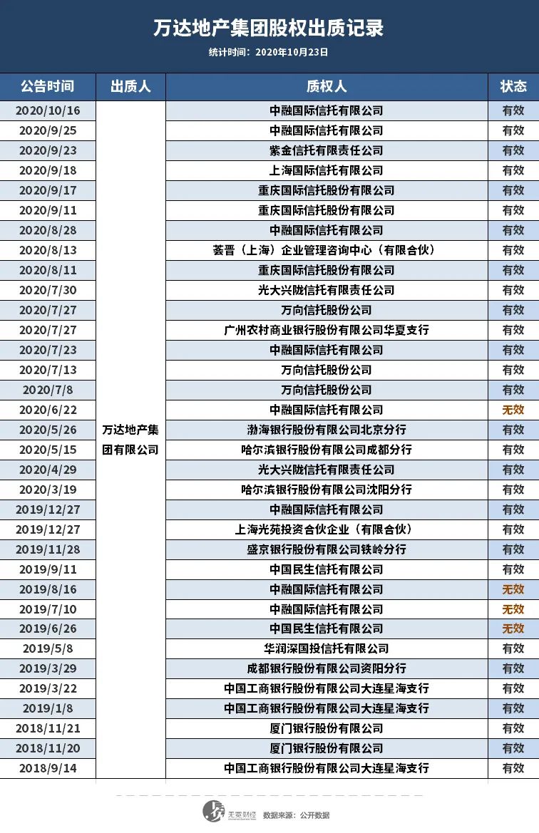 实际上,万达正悄然融资,输血地产业务。据天眼查APP显示,截至目前(2020年10月21日),万达地产集团存在34笔股权出质信息,仅在2020年1月至今,便新增20家。据无冕财经不完全统计,共计21笔是通过融资成本较高的信托行业的融资渠道,占比超过6成,包括中融国际信托 、中国民生信托、华润深国投信托等机构。