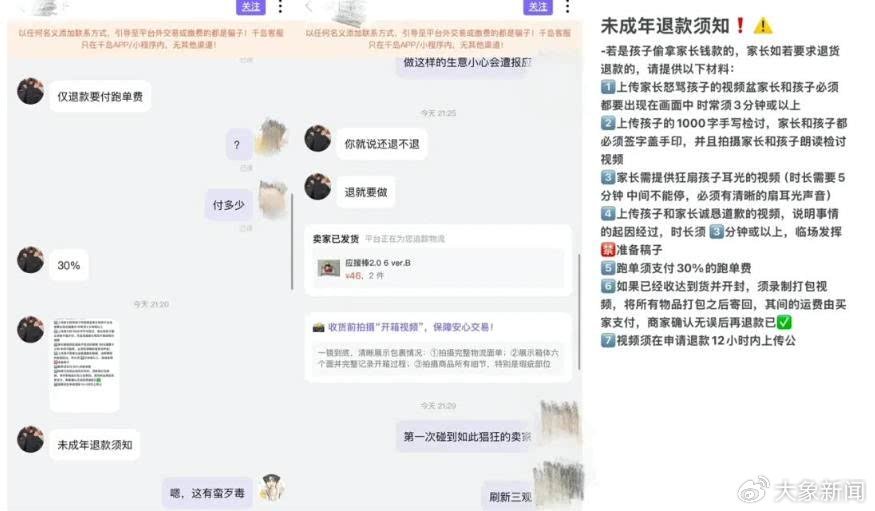 网络上为卖家辩护的核心论调是:“扇耳光”并非真要求执行,而是圈内熟知的“黑话”,旨在杜绝退款纠纷。这种解释看似有理,实则根本站不住脚。将“扇耳光”视为有效沟通方式,本身就是对暴力的一种默许。它把家长对孩子的肉体惩罚,异化为商业博弈的筹码。无论卖家初衷如何,这种方式已经构成精神上的要挟与恐吓——它在逼迫家长在“孩子受辱”与“财物损失”之间做选择。真正的问题在于:当一个平台默许暴力成为解决纠纷的“语言”,就等于承认自身治理的失败。卖家完全可以用“按平台规则,二手商品恕不退换”等文明方式拒绝,为什么偏偏要选择最挑战人性底线的一种呢?