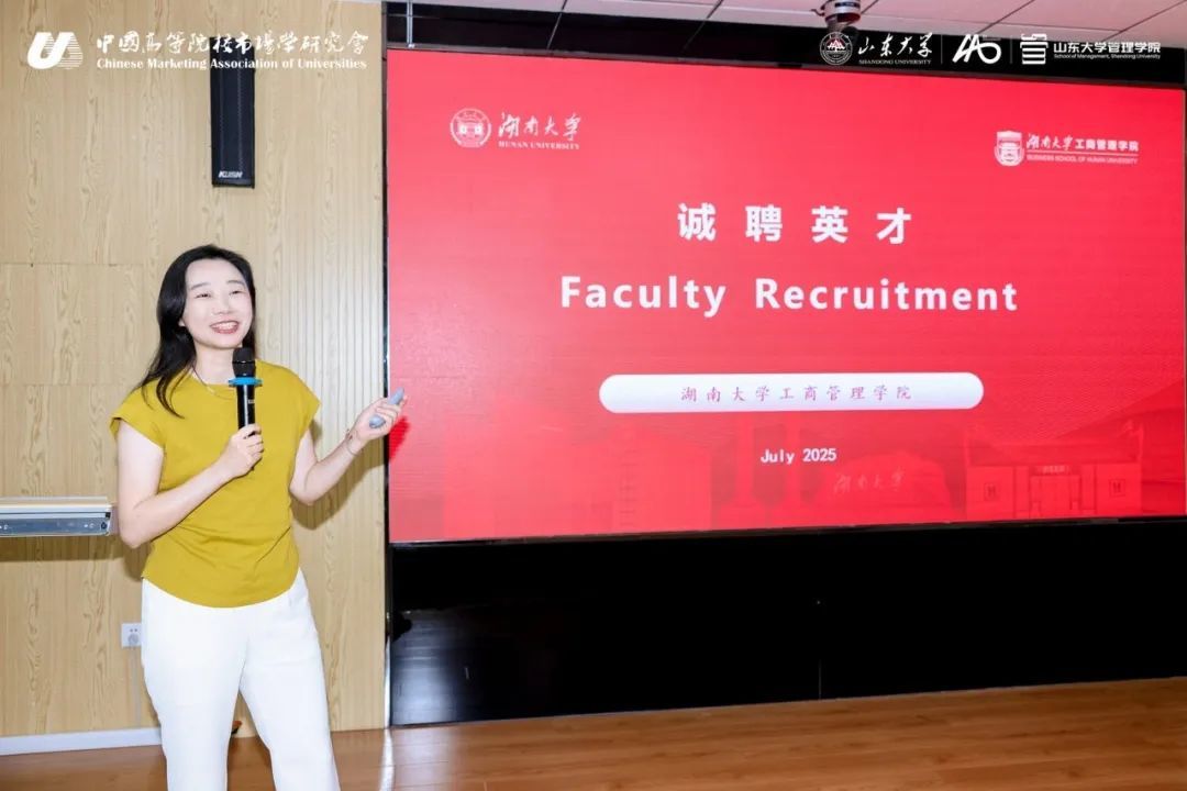 7月18日晚,2025年中国高等院校市场学研究会学术年会暨博士生论坛举办招聘专场活动。活动现场,14所高校代表依次进行宣讲,全面介绍本校的招聘方向、岗位需求、人才引进政策以及发展支持举措,帮助参会青年学者和博士生深入了解各高校的人才战略与发展规划。中国高等院校市场学研究会博士生工作委员会秘书长、重庆大学李小玲教授主持活动。