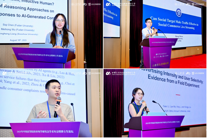 香港理工大学姚岱副教授作《AI Generated Summaries, Consumer Behaviors, and Business Implications》主题演讲。武汉大学徐岚教授作《讲好品牌故事:商业叙事的价值》主题演讲。厦门大学江玮教授作《论文写作的扫雷游戏》主题演讲。中国高等院校市场学研究会博士生工作委员会副主任、北京大学王锐副教授主持主旨演讲。