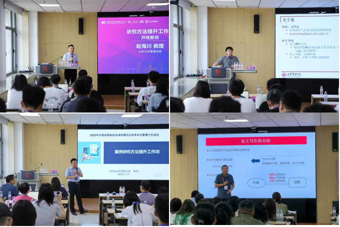 2025年中国高等院校市场学研究会研究方法提升工作坊于7月16日至17日举办。山东大学管理学院市场营销与国际商务系系主任赵海川教授作开班致辞,北京大学郑杰鑫助理教授、对外经济贸易大学李亮教授、天津财经大学冯永春副教授分别授课。来自北京大学、复旦大学、武汉大学、西安交通大学、四川大学等30多所高校近90名博士生和专家学者参加工作坊。山东大学洪瑞阳助理教授主持活动。