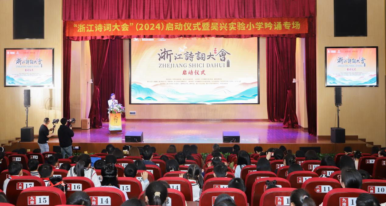 4月22日,由中华诗词研究院、浙江省文史研究馆指导,中共湖州市委宣传部、湖州市教育局、浙江诗词大会组委会主办,中共湖州市吴兴区委宣传部、吴兴区教育局、吴兴区织里镇人民政府、吴兴区文联共同承办的“浙江诗词大会”(2024)启动仪式暨吴兴实验小学吟诵专场活动在湖州市吴兴区举行。市区有关部门领导,浙江诗词大会组委会代表等出席启动仪式。