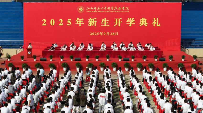 9月28日上午,江西师范大学科学技术学院2025年新生开学典礼在正大田径场举行,一场属于新时代青年大学生的青春启航仪式拉开帷幕。